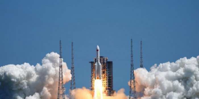 天和空间站的寒武城模块是从中国最南端的海南岛(Hainan Island)发射的。一群太空爱好者在整个诉讼中观看并挥舞着旗帜。