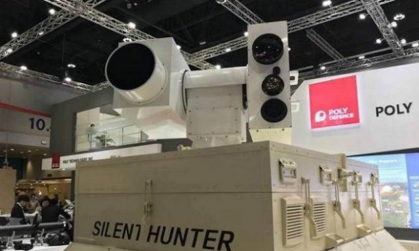 中国的Poly Technologies Inc展示了一支旨在击落无人机的激光枪。中国合力集团是中国最新的国有武器经销商,代表国际销售中的国防承包商。警察可以为反恐怖主义或军方进行防空猎人的激光枪。在模拟显示器中,枪对准了300米远的无人机,并立即将其击落。