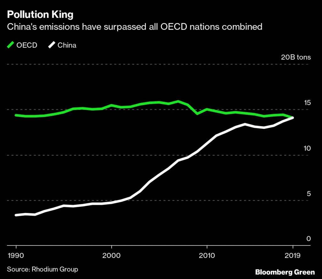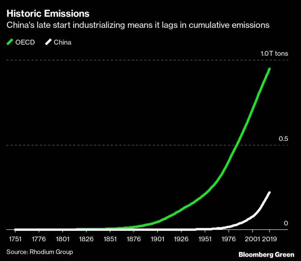 是表示,中国最近已成为第一,其他国家早在1750年已排出的温室气体。所以他们比中国有影响环境。Rhodium Group的数据显示,中国已经超过了总排放量的经合组织的成员,这是经济合作与发展组织。