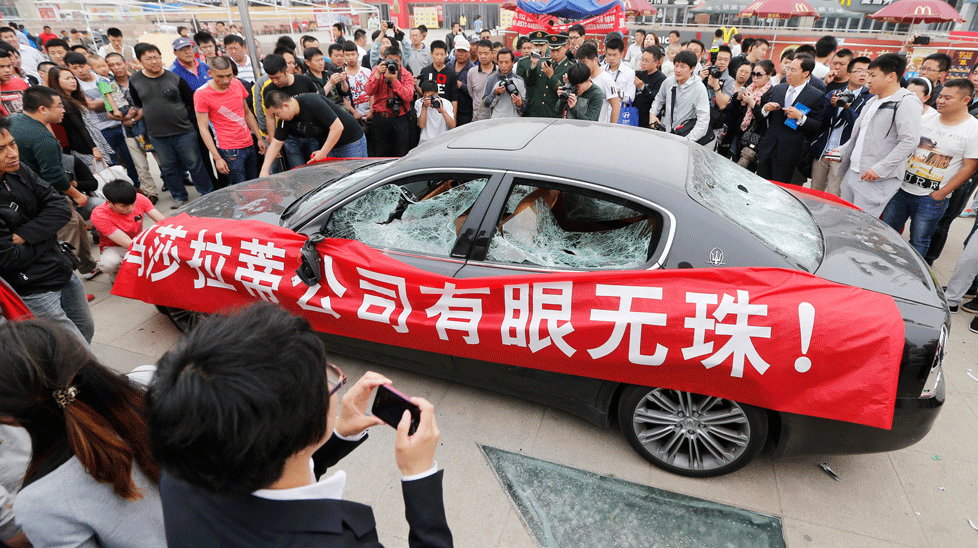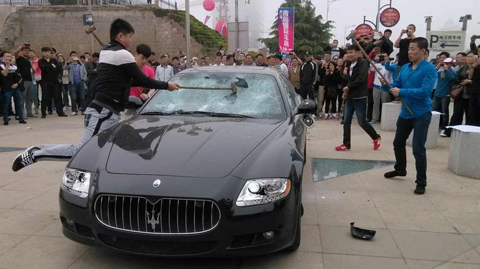 像其他任何只能拿这么多的明智人物一样,王决定是时候让尼斯·套路的惯例了,他下定决心要发送一条信息,这对玛莎拉蒂来说已经足够清楚了。他等待了青岛车展,并事先告诉媒体,以确保他获得足够的宣传和媒体报道。这辆车被带到演出的旗帜上,描绘了玛莎拉蒂提供糟糕的服务。然后,他付了三名男子,用大锤砸碎了汽车。对于青岛汽车展的参与者来说,这是一个事件。汽车受到严重伤害;挡风玻璃,大灯,镜子和烧烤炉以及这款豪华车的身体的一些沉重的凹痕。王说;‘I hope foreign luxury car producers acknowledge clearly that Chinese consumers are entitled to get the service that is commensurate with the brand.’ There many other who feel the same way that Chinese customers are not being provided the same standard of services and equipment by international car companies. There are other events such as this one too; a man smashed his Lamborghini Gallardo and another incident where the owner used two donkeys to tow his Range Rover to the dealership. This might prove not very good for international car companies since China is growing in economy and they might lose a potential country as a customer. Still, Mr. Wang aka Chinese Hulk sure did something bold and stupid.