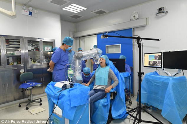 机器人臂的第一次手术是在中国的一名妇女上进行的,该妇女涉及将两个3D印花牙齿植入患者的嘴中。手术花了大约一个小时,并受到两名没有协助机器人的人类医务人员的监视。在准备手术时,将面向位置的设备安装在患者的嘴中。机器人使用CT扫描仪评估了头骨和下巴。