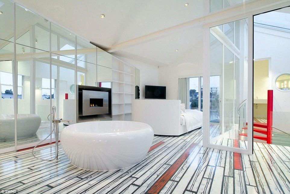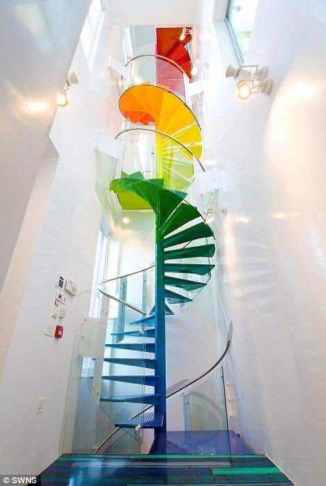 这所房子被称为彩虹之家,已在租赁市场挂牌,价格为每月1.5万英镑。这所房子是如此令人惊叹,因为它包含了一些功能,包括一个可以让你进入客厅的滑梯。一旦AB Rogers完成了滑梯,他就用4种颜色和完全协调的地板改造了房子,中央旋转楼梯和主卧室,配有一张可以360度旋转的床。