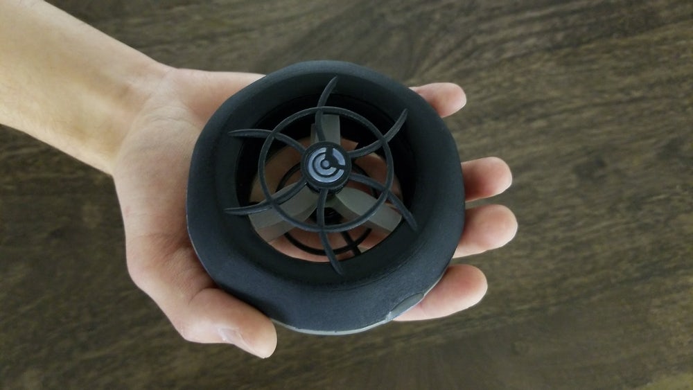 里面有两个螺旋桨堆无人机的身体堂。在顶部和底部都有格栅保护用户的手指旋转的螺旋桨。这意味着你可以伸出你的手,抓住了无人机飞行时也不用担心你的手指。