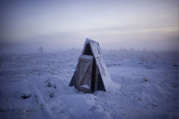 大多数厕所都位于外面,因为冷冻地面使室内管道不可能。