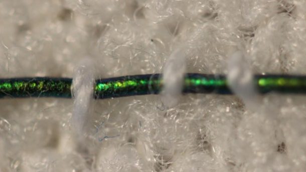 助理教授Mathias Kolle领导MIT的团队,使这些改变颜色的绷带纤维。这些可压力感应拉伸光子纤维已编织成传统的压缩绷带。每个纤维的直径约为人毛的10倍。它是通过在弹性芯细丝周围透明的透明橡胶滚动层制成的。