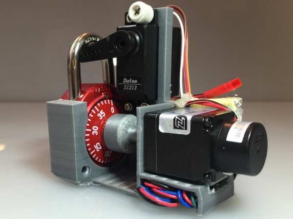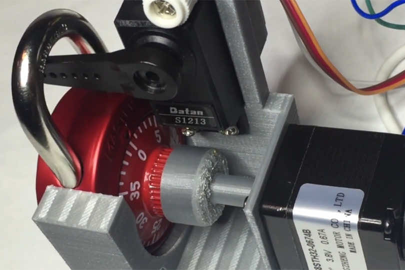 组合开关使用两个马达旋转拨号,另打开锁定在需要时。它是由电池,和编码已经完成一个Arduino控制器上运行的软件。它本身就是一个微型计算机。设备的外壳控股公司,这是印刷使用3 d打印技术。爱游戏ayx体育(Samy Kamkar有些白色的黑客,他已经释放他的工作和网上所有的蓝图。虽然这种设备可能会造成破坏,这姿势有点危险的因为它是只在一个特定类型的组合可操作的锁,这太便宜的一个。