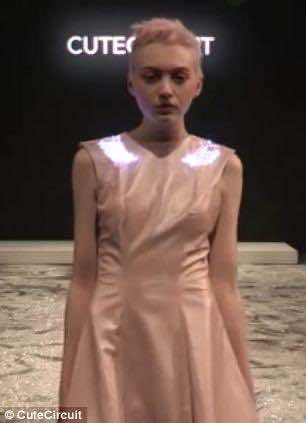 的人CuteCircuit已经名人客户,如妮可Scherzinger,穿着著名的2012年Twitter的衣服,显示实时更新。这条裙子是由法国真丝雪纺和含有500颗施华洛世奇水晶和2000多个发光二极管。也许有一天我们都穿着衣服,可以玩我们喜欢的视频剪辑,在黑暗中发光。