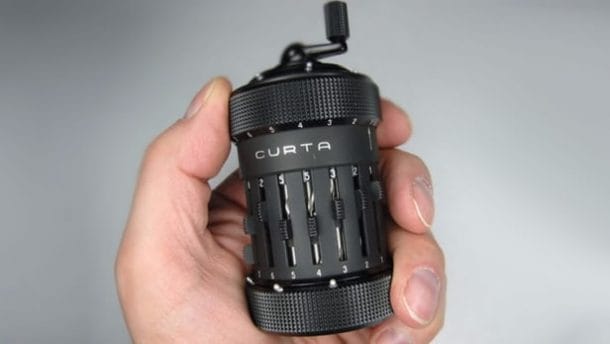 Curta计算器是由手曲柄提供动力的四函数计算器。该计算器在纳粹死亡营中由Curt Herzstark开发,被认为是机械奇迹,像胡椒粉一样适合手掌。