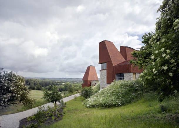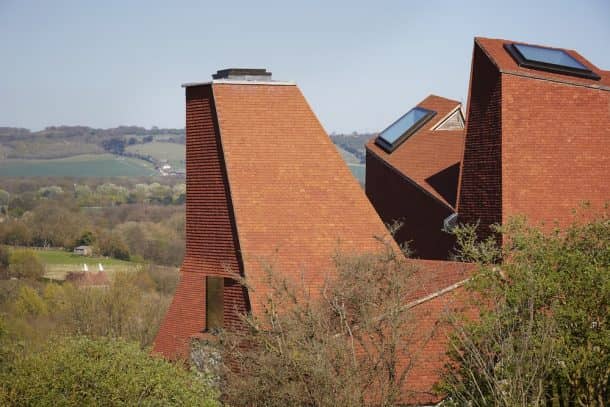 爱心木材由围绕中央庭院的4座倾斜塔楼主导,非常像过去用于啤酒生产的传统烘焙屋。建筑师詹姆斯·麦克唐纳·赖特(James Macdonald Wright)和尼尔·麦克斯韦尔(Niall Maxwell)试图让它尽可能保持传统,并使用了手工粘土瓦片和栗子灌木覆层等当地材料。