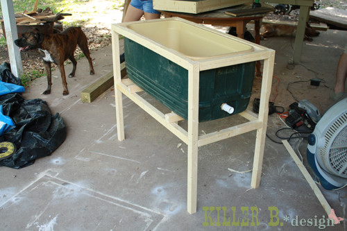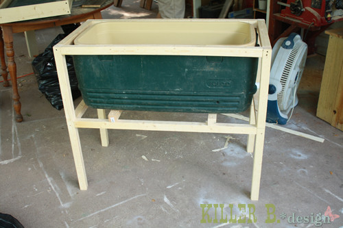 在这个过程中还需要建造一个木制框架。在这里,框架已经准备好,有一个足够坚固的身体来承受冷却器的重量。