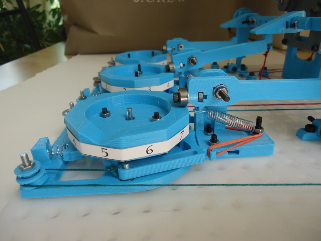 曲柄计算机成本约100美元,附带三个不同的阶段;软件,内存和处理。采用穿孔卡片,工作就像这台电脑软件。杠杆的卡片基本上开始运动,负责拉绳子,最后增加/减少数字计数器。为了确保这些车运行没有休息,他们与循环的刺绣牙线绑在一起。柜台轮子像RAM存储数据时所产生的计数器。手动曲柄计算机的CPU,越快的速度计算。一个惊人的艺术作品,不是吗?