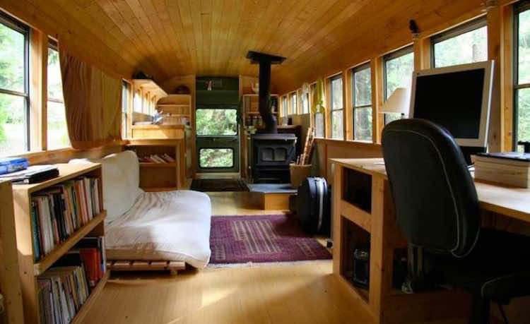 WPI创意公司坐上了校车,然后把它改造成了这对夫妇居住的房子。现在,它在喀斯喀特山。巴士上进行了一些调整。例如,为了确保居民在冬天保持温暖,巴士上有自己的乡村木材燃烧炉,同时拥有充足的光线和自然通风。它还可以移动窗户,如果室内开始变得太热,它们可以打开。