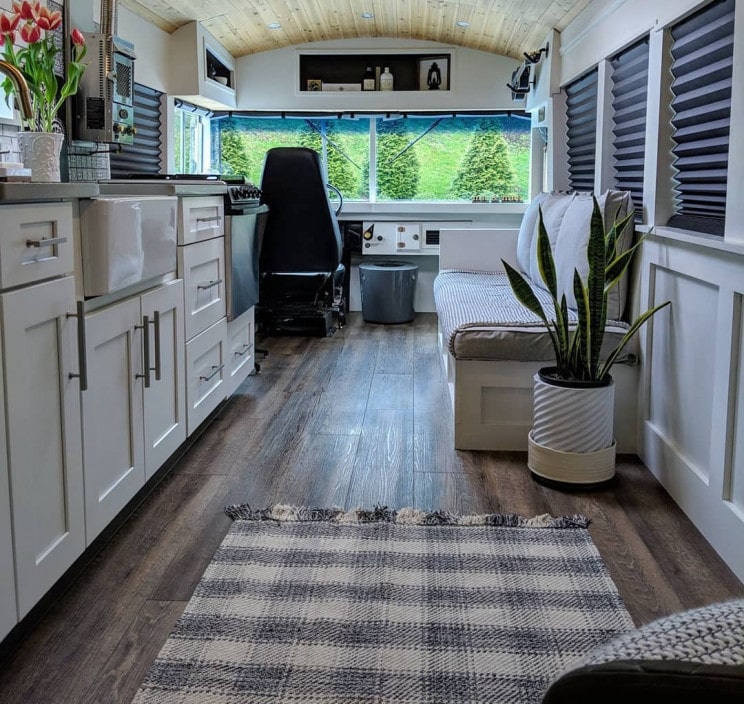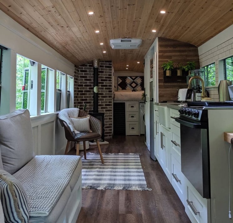 “车轮上的房子”校车可以提供很多。它甚至具有真实的瓷砖,真实的石英台面和太阳能电池板,可提供无尽的清洁,可再生能源。