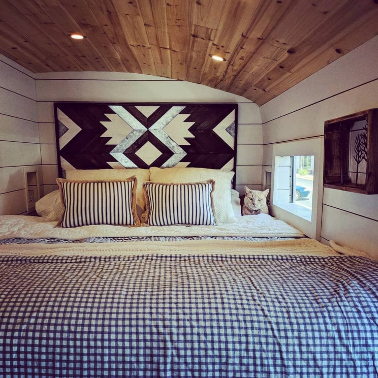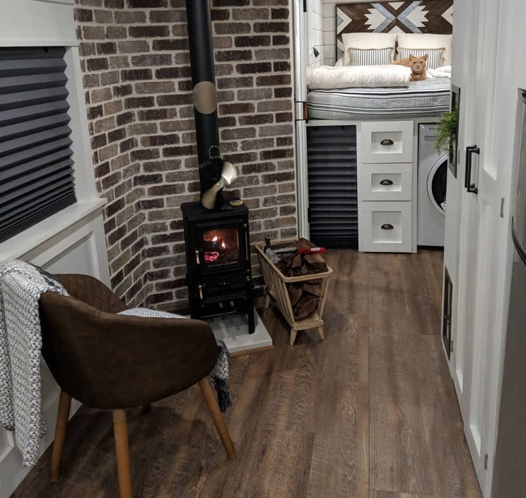 这对夫妇设计和定制了它的特定需求,因为他们希望使它完全离网。它的一些很酷的功能是燃木炉灶,玻璃淋浴门和由真正的砖块制成的墙壁。