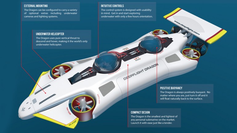 DeepFlight是一家开创性的水下航空公司,并准备在下周举行的2014年摩纳哥游艇展上发布一款新的个人潜艇。据说,这艘潜艇就像在公园里散步一样容易驾驶,因此,它将在旅游和租赁市场上开辟一个新的利基市场。这艘名为“DeepFlight Dragon”的潜艇下水后将成为目前可购买的最紧凑、最轻量的个人潜艇。用户将需要一个简单的操作手册来驾驶它。