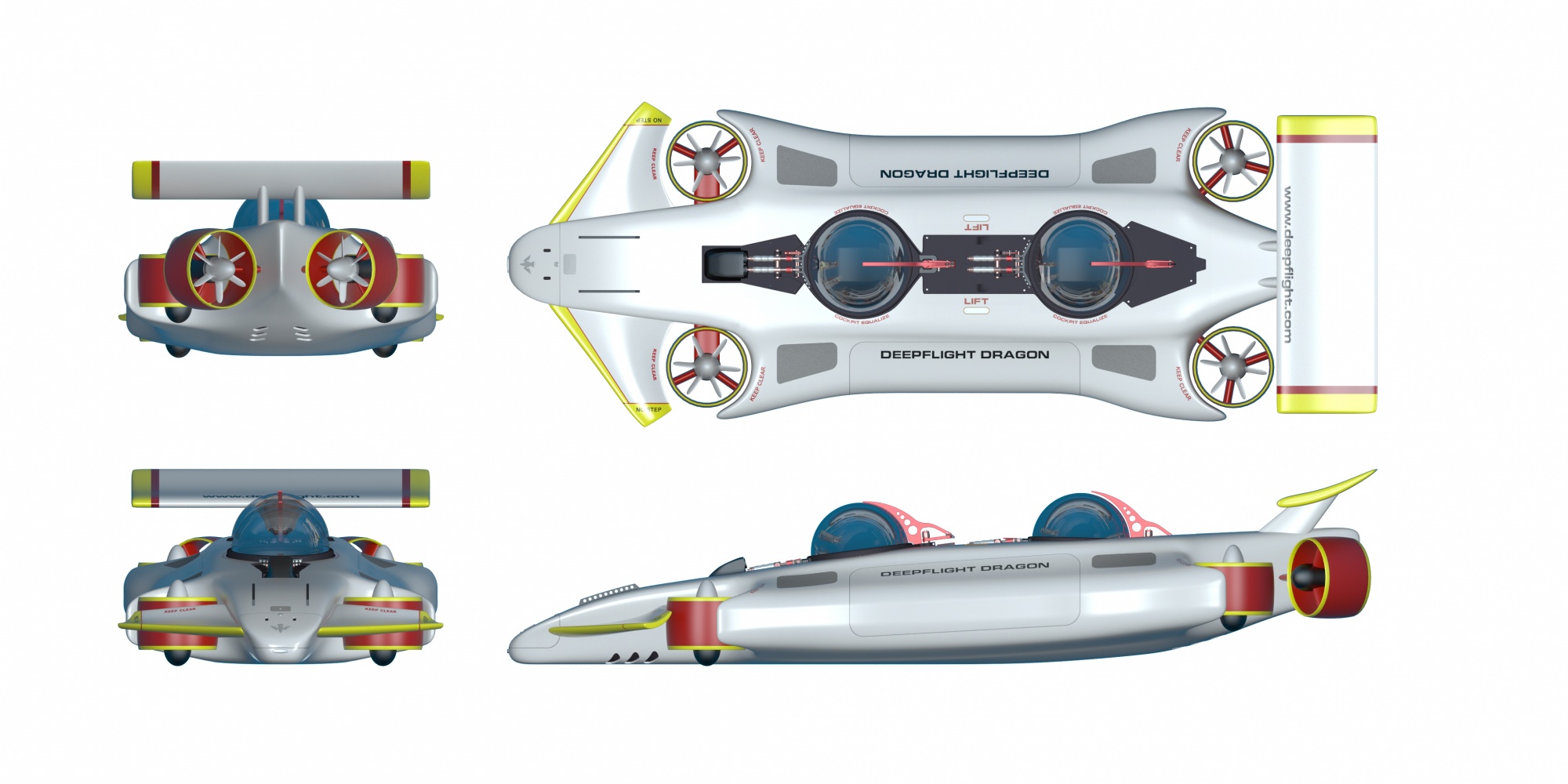 用DeepFlight创始人格雷厄姆·霍克斯的话来说;霍克斯说:“DeepFlight Dragon无人机的诞生是因为我参加了一个关于电动飞机的会议,每个人都对制造一架人们可以轻松驾驶的全尺寸无人机的想法很感兴趣。”“我突然想到,我现在可以在水下做这件事了,我最好快点做,因为如果我不做,别人会做的。所以我们加入了专利,结果就是DeepFlight Dragon。龙最显著的特点是它的正浮力。也就是说,如果你失去动力,或者关掉电源,你就会回到水面,而不是沉入海底。这与控制一艘普通的潜艇或潜水器有很大的不同,在那里你打开阀门,让它变重,然后你就会下沉。如果,就像我很久以前潜水时发生的那样,当一个旋钮从控制空气的阀门上掉下来,你就会一直往下沉,我可以告诉你,那不是一种好感觉。飞龙实际上是一架飞机。我知道我们不能用这个名字,但它实际上是一架水上飞机。 So all the controls, everything about the Dragon has been designed for ease-of-use. It is so intuitively easy to use for the uninitiated, that I think this will become the first submarine that can go into a rental program, where a resort can rent it by the hour.’