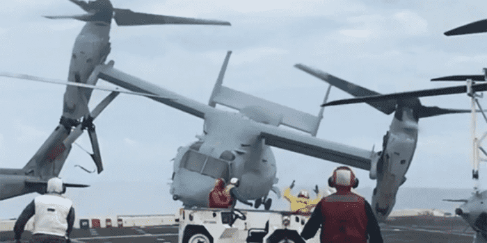 还一个戏剧性的悲剧视频MV-22B鱼鹰的海洋中Tiltrotor中队265已经浮出水面。飞机试图降落在USS绿湾附近的船操作(LPD-20),昆士兰,澳大利亚,2017年8月5日。灰尘下的视频仍然超过五年,但最近浮出水面。飞机突然下降,其左引擎味道而降落在一个拥挤的圣安东尼奥类的飞行甲板两栖运输码头的船。水手随便录制视频的机库似乎跑向眼前就意识到形势已变成一个令人讨厌的人。