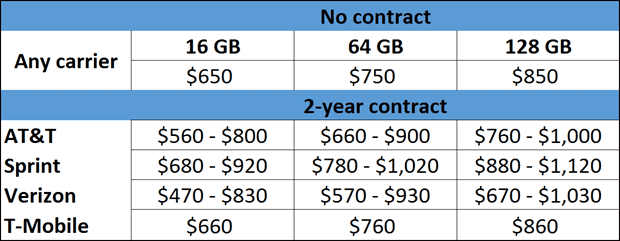 价格已经引用实际上是代表你要支付的金额让你的iPhone。然而,潜在的成本(计划等)将导致更高的价格。所以价格被引用只是首付。你将不得不支付的实际价格为iPhone在美国6将很大程度上取决于你选择的载体。