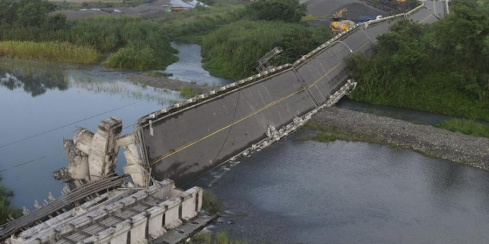 地震震撼了自扎的岛屿之后,台湾南部农村地区的一座600米长的桥被摧毁了。录像显示了东部霍利恩县东部的高利亚桥,里面有碎片。