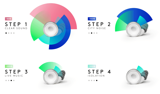 诺普斯(Knops)是一家位于阿姆斯特丹的公司,为简单的耳塞提供了噪音解决方案。完全声学核心设计的看起来像栅格。它们是最容易使用的。对于您需要的声音设置,有四个不同的步骤。第一步没有过滤任何东西,扭转到第二步,音量会稍微倒下,并且会过滤一点噪声。这将使您免于尖叫的孩子,但会让您听到迎面而来的流量。步骤3将使音量降低一点,同时进一步扭转步骤4将几乎将所有内容静音,您可以沉默。