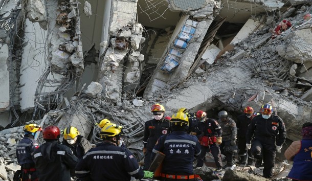 台湾遭受强烈地震袭击,救援人员正忙于寻找和拯救24小时后仍下落不明的100多人。地震后,一座17层的大楼倒塌,近124人失踪。