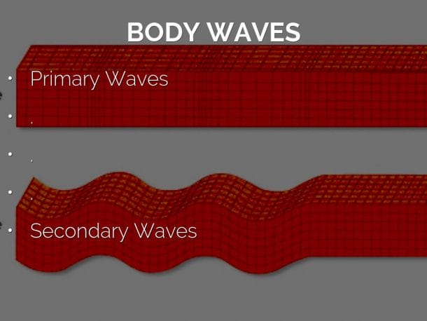 表面波由一块石头扔水可能是一个很好的可视化地震。然而,由于地震产生的地震波方法更为复杂。地震辐射波的两种类型即压缩(主要)和横向(二级)。的P波与S波与地球表面产生表面波。