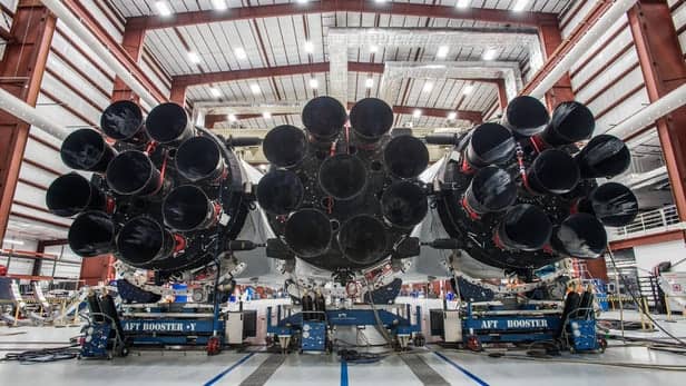 每一级的9个发动机核心一起工作,提供相当于18架747飞机的推力。这使它成为自1973年土星5号火箭发射以来最强大的火箭。埃隆·马斯克透露,猎鹰重型火箭将从NASA肯尼迪航天中心土星5号火箭使用的同一发射台起飞。