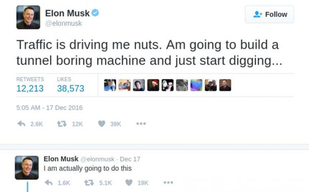 12月17日,马斯克在推特上发文表示,他已经厌倦了堵车他“打算造一台隧道掘进机,然后开始挖……”