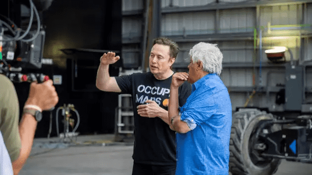 麝香给电视主持人杰·雷诺参观SpaceX的母星设施在德克萨斯州,展示公司的一些猛禽引擎,这是在飞船的宇宙飞船计划能力。他说,SpaceX公司开发了发动机在加州。