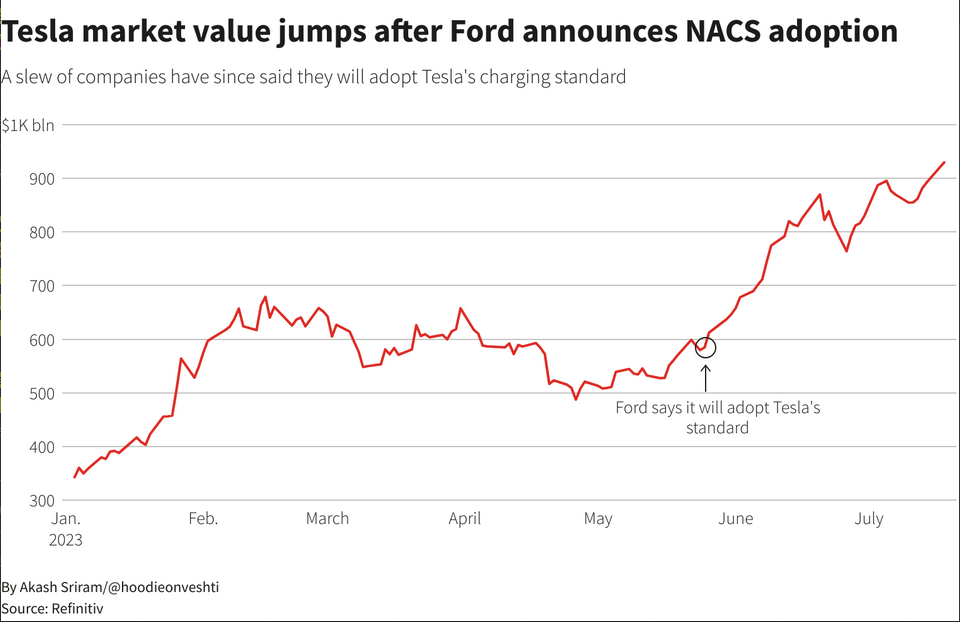 特斯拉的股票得到了提升后,今年几家主要汽车制造商和电动汽车充电公司决定采用特斯拉的充电技术。爱游戏ayx体育公司的股票大幅上涨,扩大联邦信用模型的帮助下3 s和热情在人工智能。