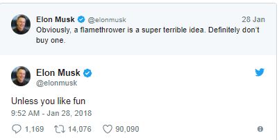 - Elon Musk (@elonmusk)2018年1月28日,