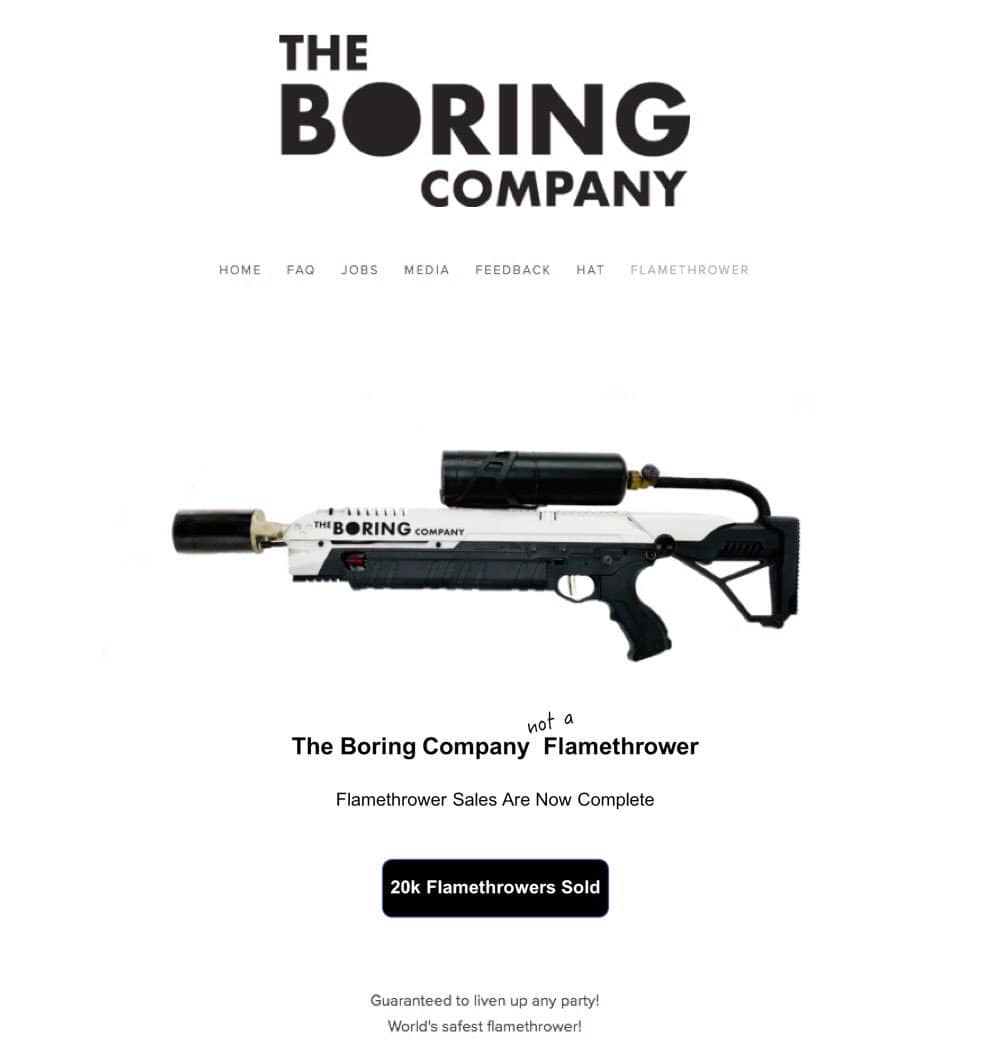 现在还有另一个问题,那就是海关官员不允许任何带有喷火器标签的东西通过,埃隆·马斯克也有一个解决方案,那就是简单地将产品命名为不含喷火器的产品