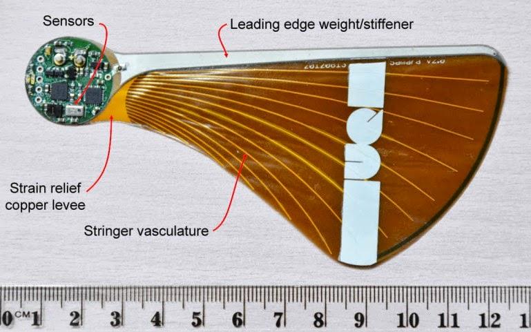 第一个设计是在从纸飞机启发的同时建模的。它是使用纤维素板创建的,该纤维素板使用喷墨打印机在其体内进行电子电路。在“铺设”这些电路之后,无人机接触了采用紫外线的固化过程。这导致无人机车身转换为灵活的电路板。无人机的航空电子系统连接到无人机的后部,并连接到使其在部署到目标区域时引导自身的电路。