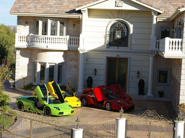 哇。至少有两个富人有足够的常识建造一个车库,你可以开车出去,而不用播放音乐车