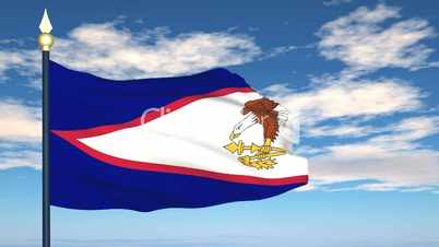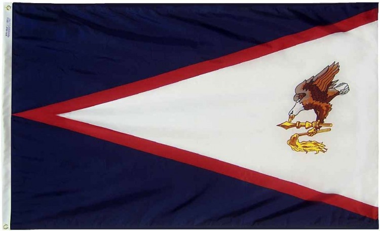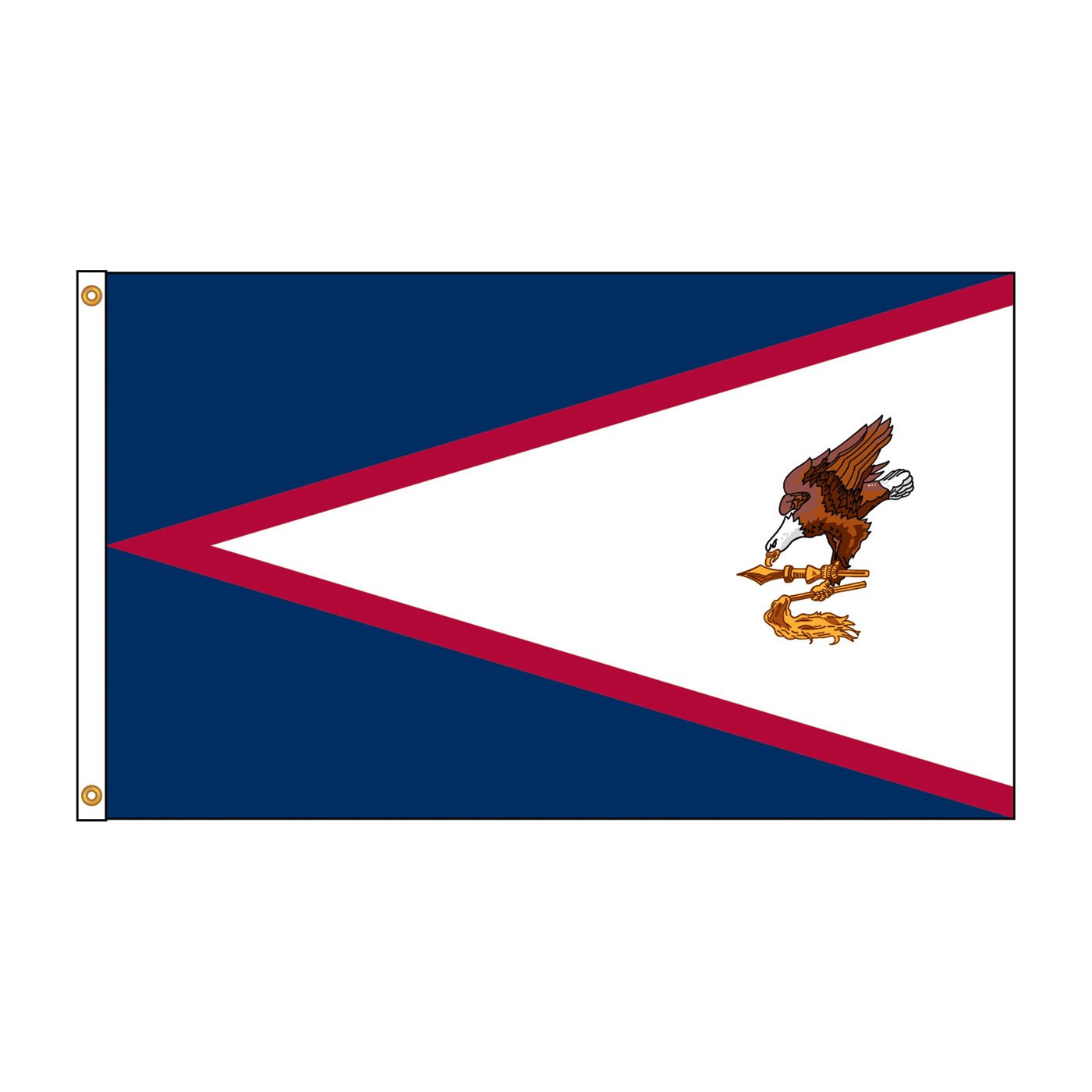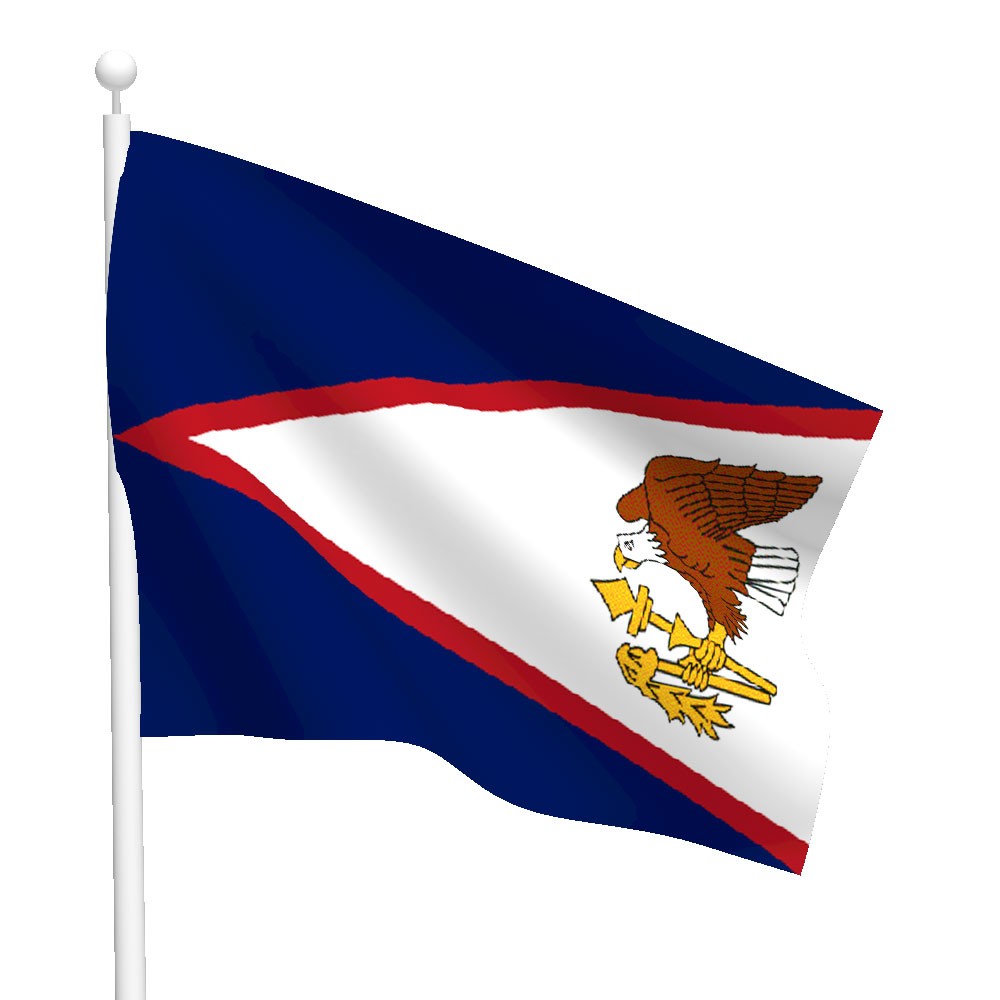 美属萨摩亚国旗由一个红边白色三角形组成,三角形朝向升降机,上面有一只抓着一支战队的大鹰和飞拂,上面有深红色的上下三角形。它于1960年4月实施,取代“星条旗”成为该地区的正式旗帜,自那一年起一直是美属萨摩亚领土的旗帜。使用的色调集中体现了美国和萨摩亚的传统色调。