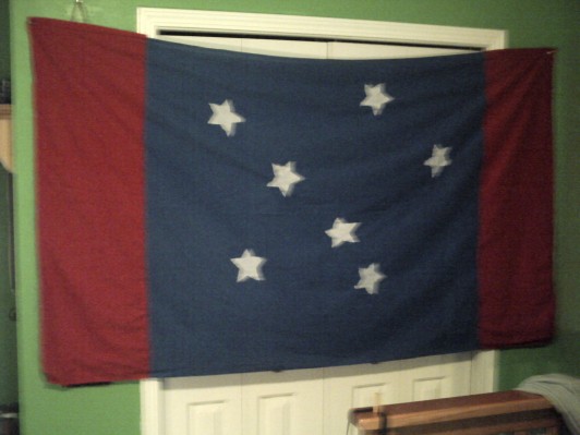 南极联合状态的旗帜是一个旗帜,在红色区域中有两条红色的水平线,有七个白色的星星(每个恒星都包含七个状态)。国旗是由德文·摩尔(Devon Moore)于今年夏天开发的,最终风格是在2009年8月22日实施和正式创建的。
