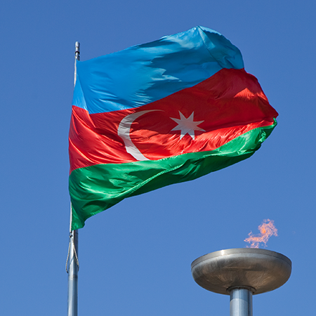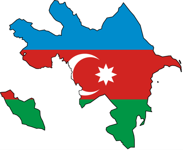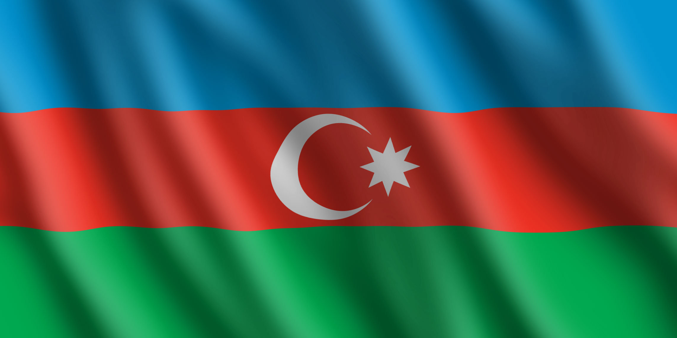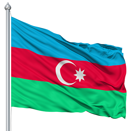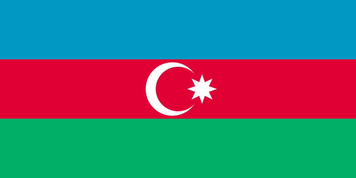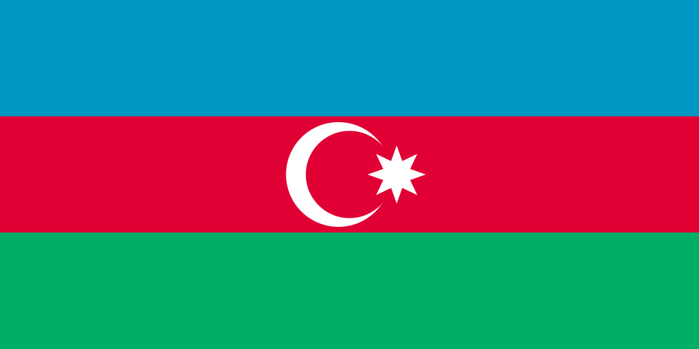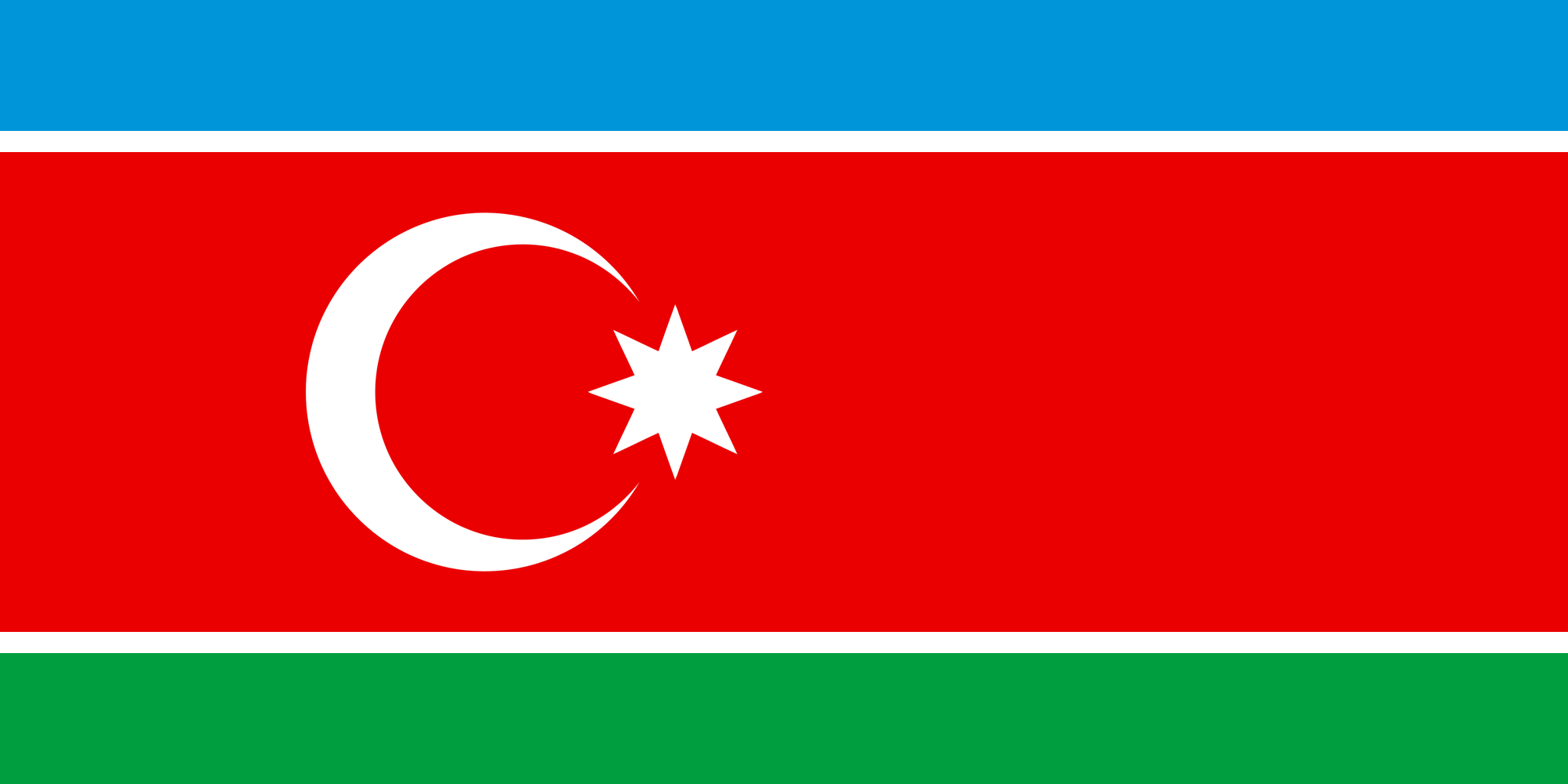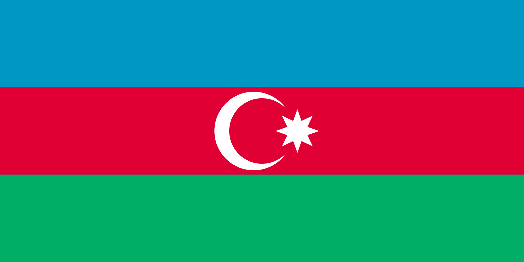 阿塞拜疆的国旗包括三个水平等效的作品。顶部是蓝色条,红色中部,减少为绿色。在旗帜的中间,在红条上,有一个八角的白色恒星和白色新月。标志的主要信息以及速率可以在199年11月12日应用的阿塞拜疆的结构中发现