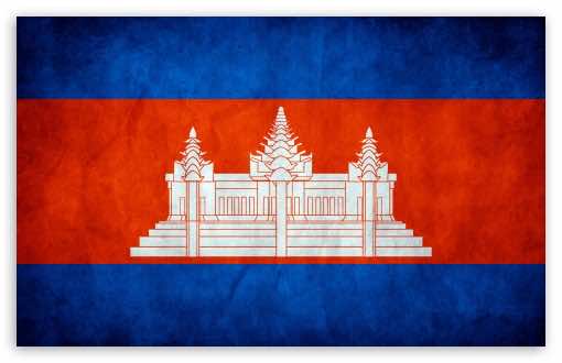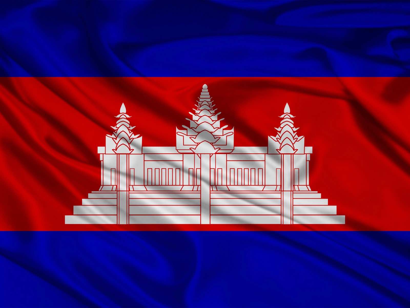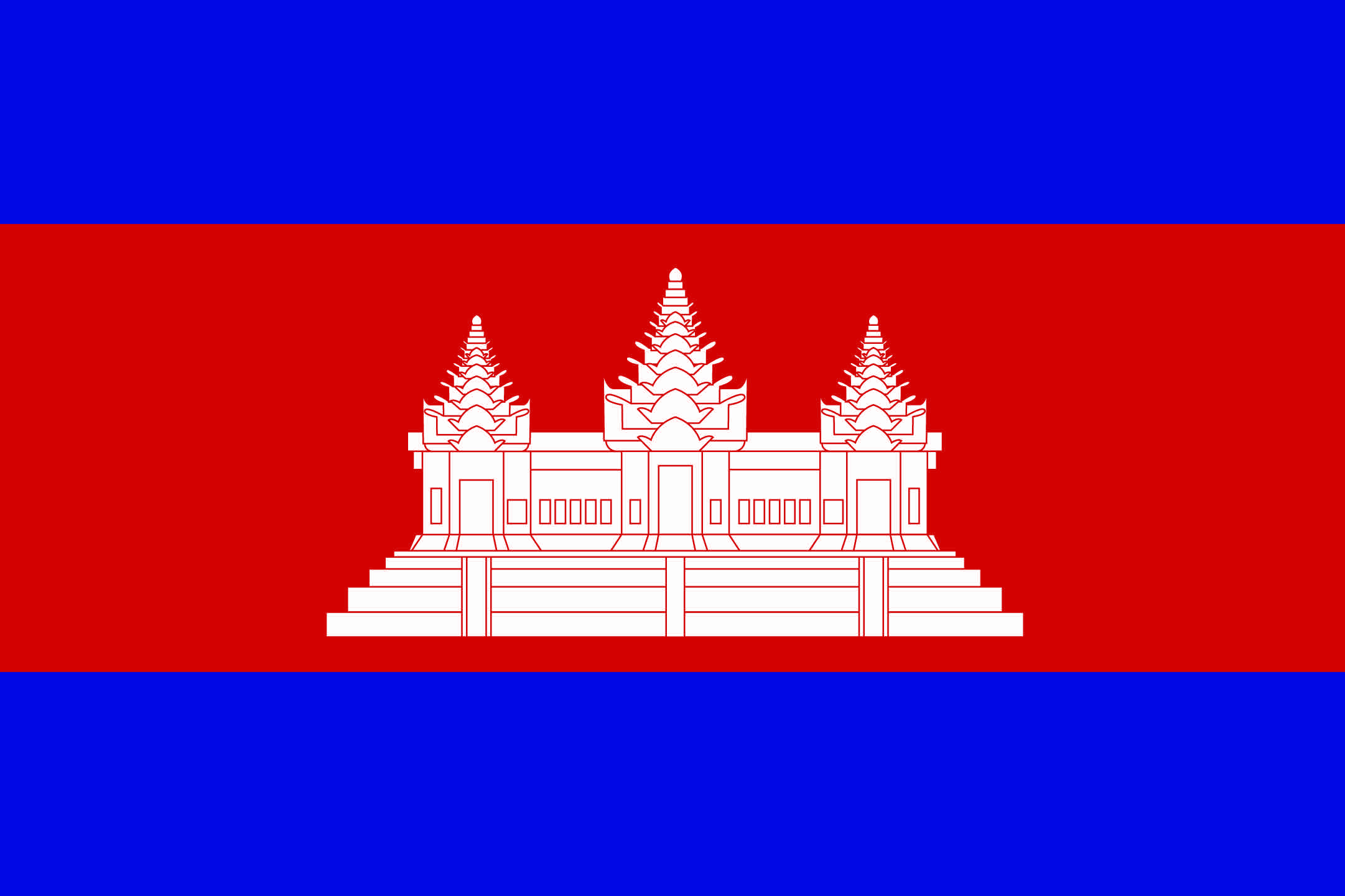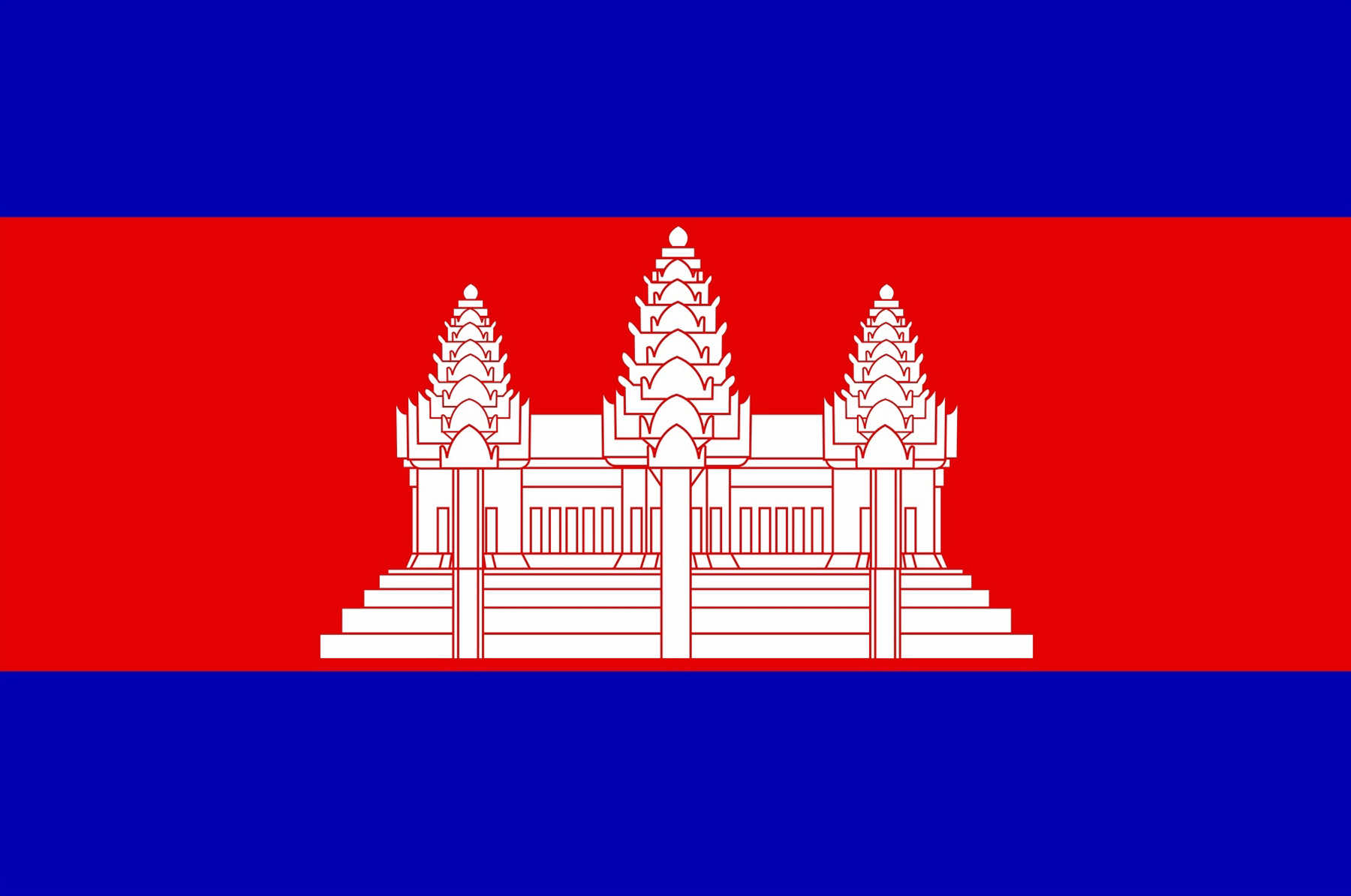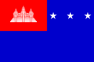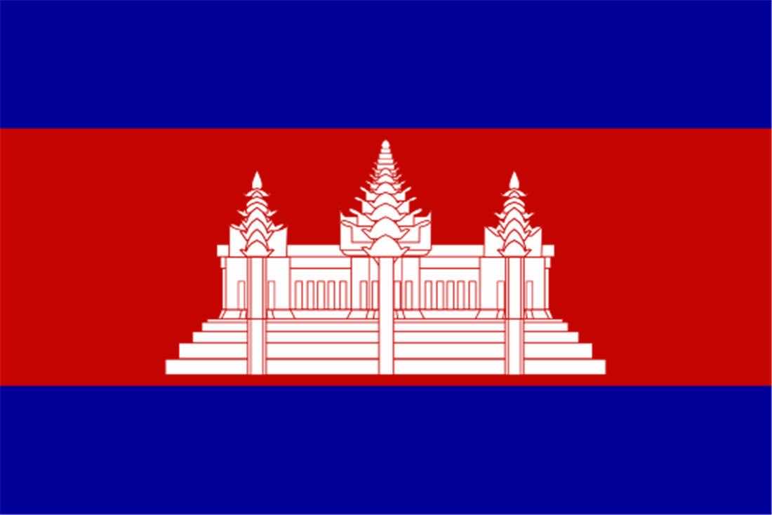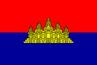 自1850年左右以来,柬埔寨国旗提出的解释在本世纪中叶吴哥窟。现在国旗,用蓝色乐队在上部和底部的水平和红色封面的主要部分国旗在1948年应用在柬埔寨的自由。以下国家的民主柬埔寨,坚持从1975年到1979年,用红旗与主桥吴哥窟风格保持黄色。