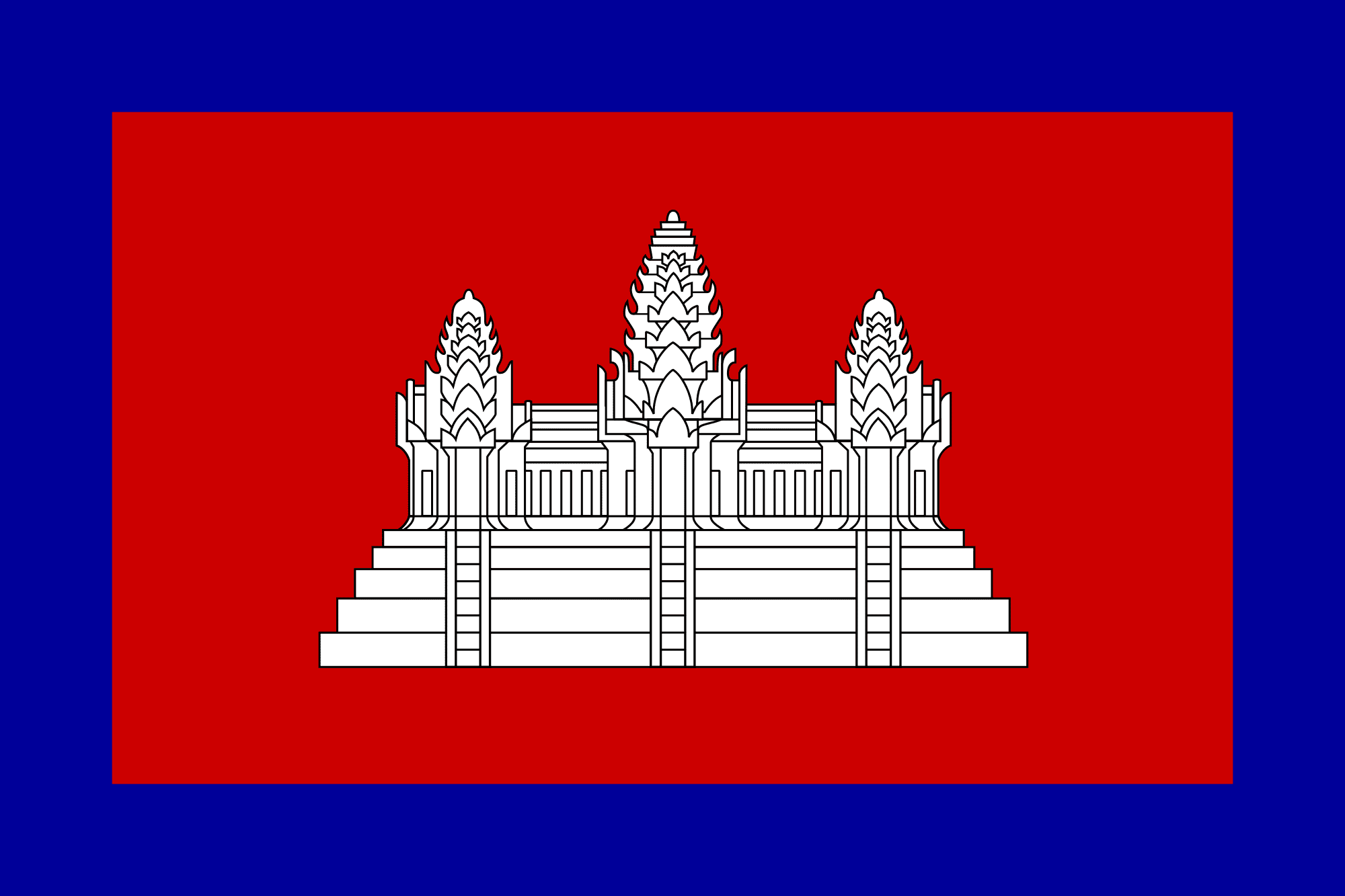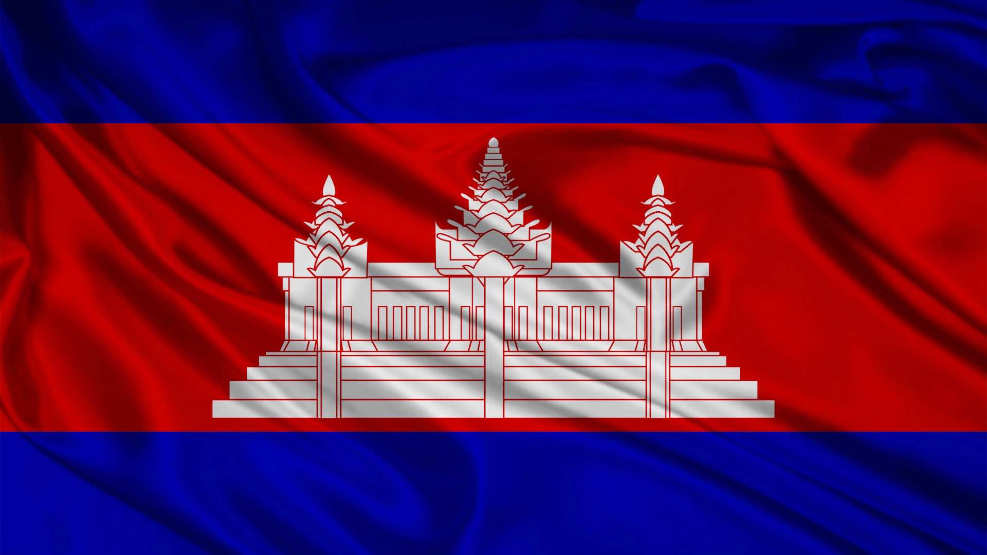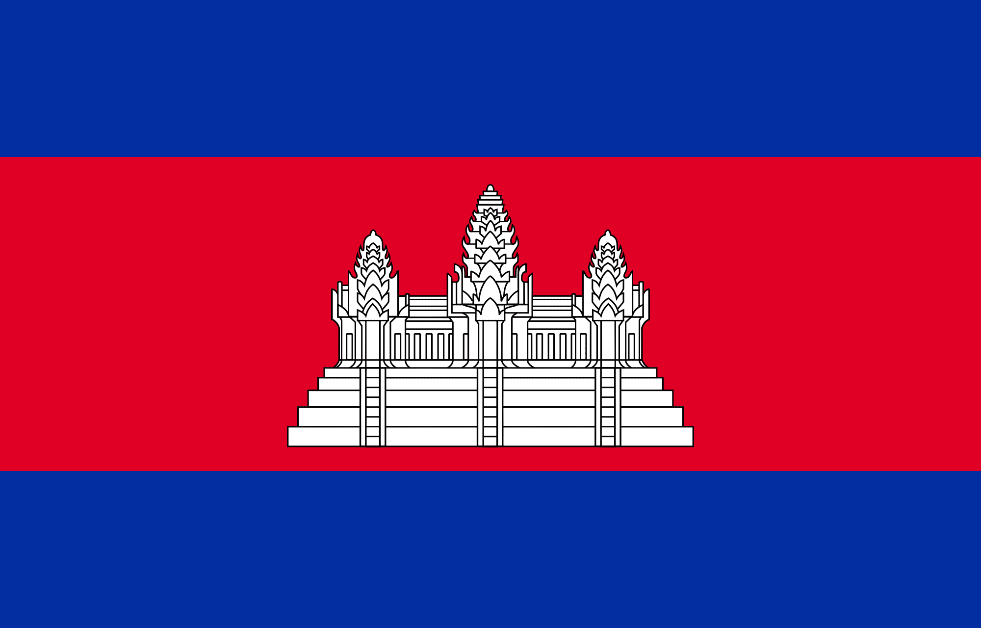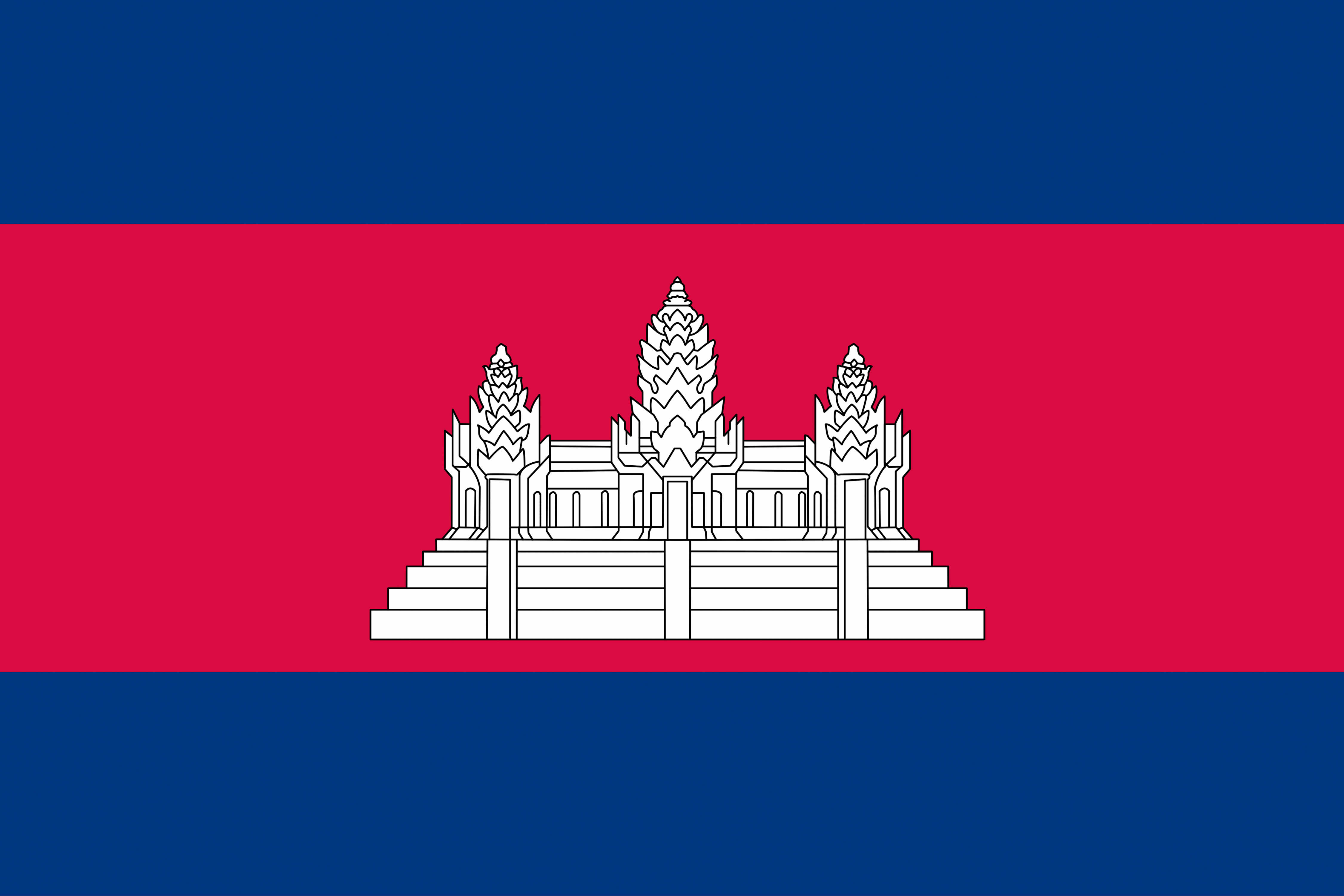 自1850年左右以来,柬埔寨国旗提出的解释在本世纪中叶吴哥窟。现在国旗,用蓝色乐队在上部和底部的水平和红色封面的主要部分国旗在1948年应用在柬埔寨的自由。以下国家的民主柬埔寨,坚持从1975年到1979年,用红旗与主桥吴哥窟风格保持黄色。
