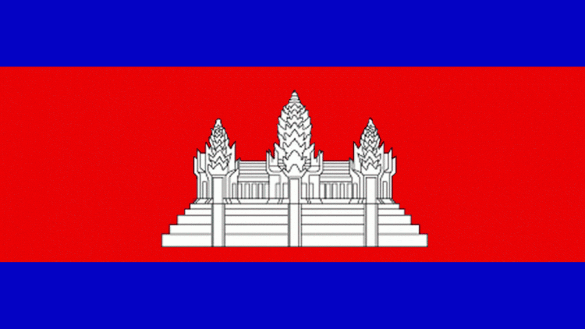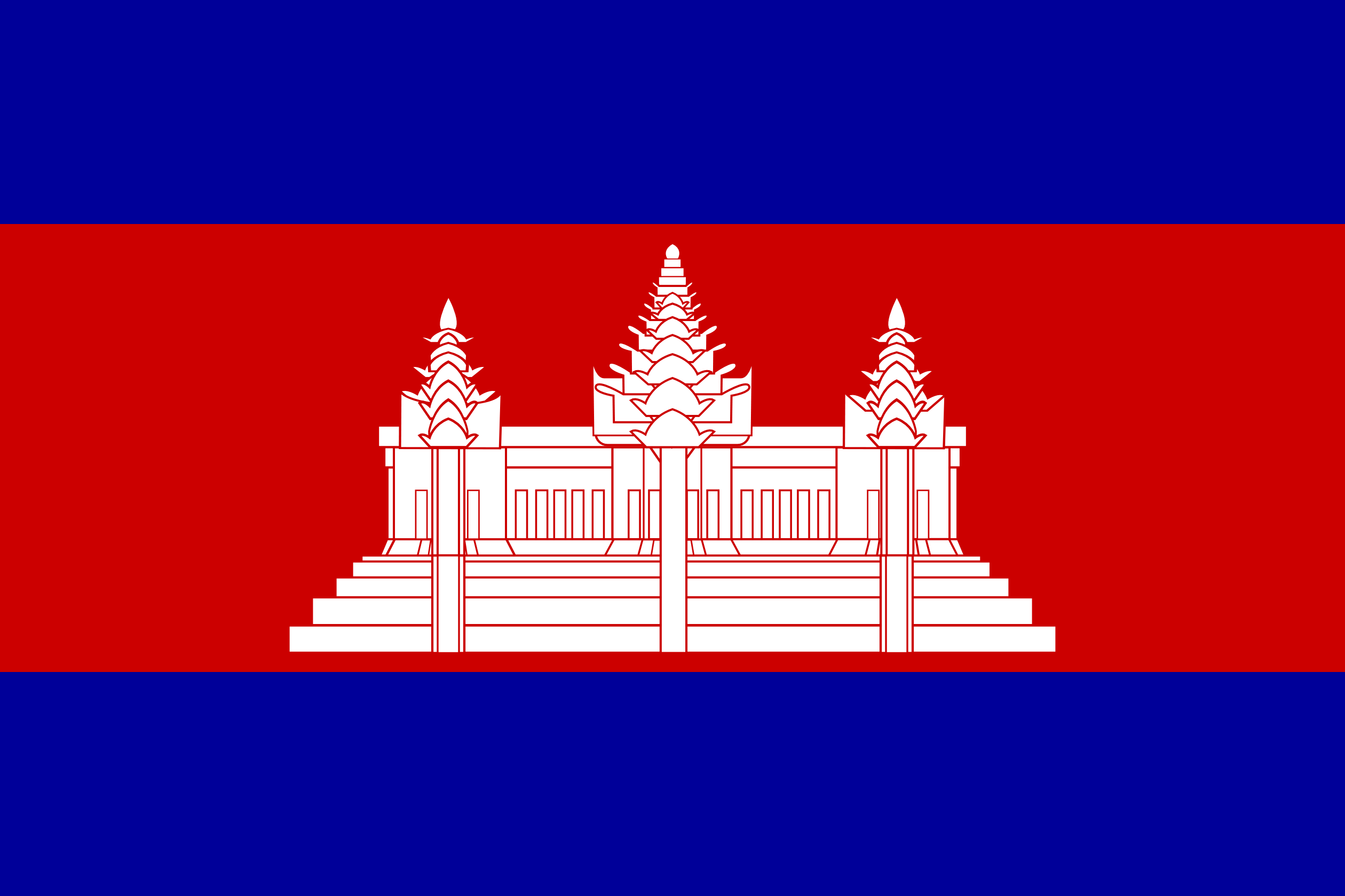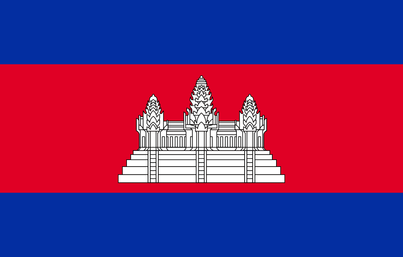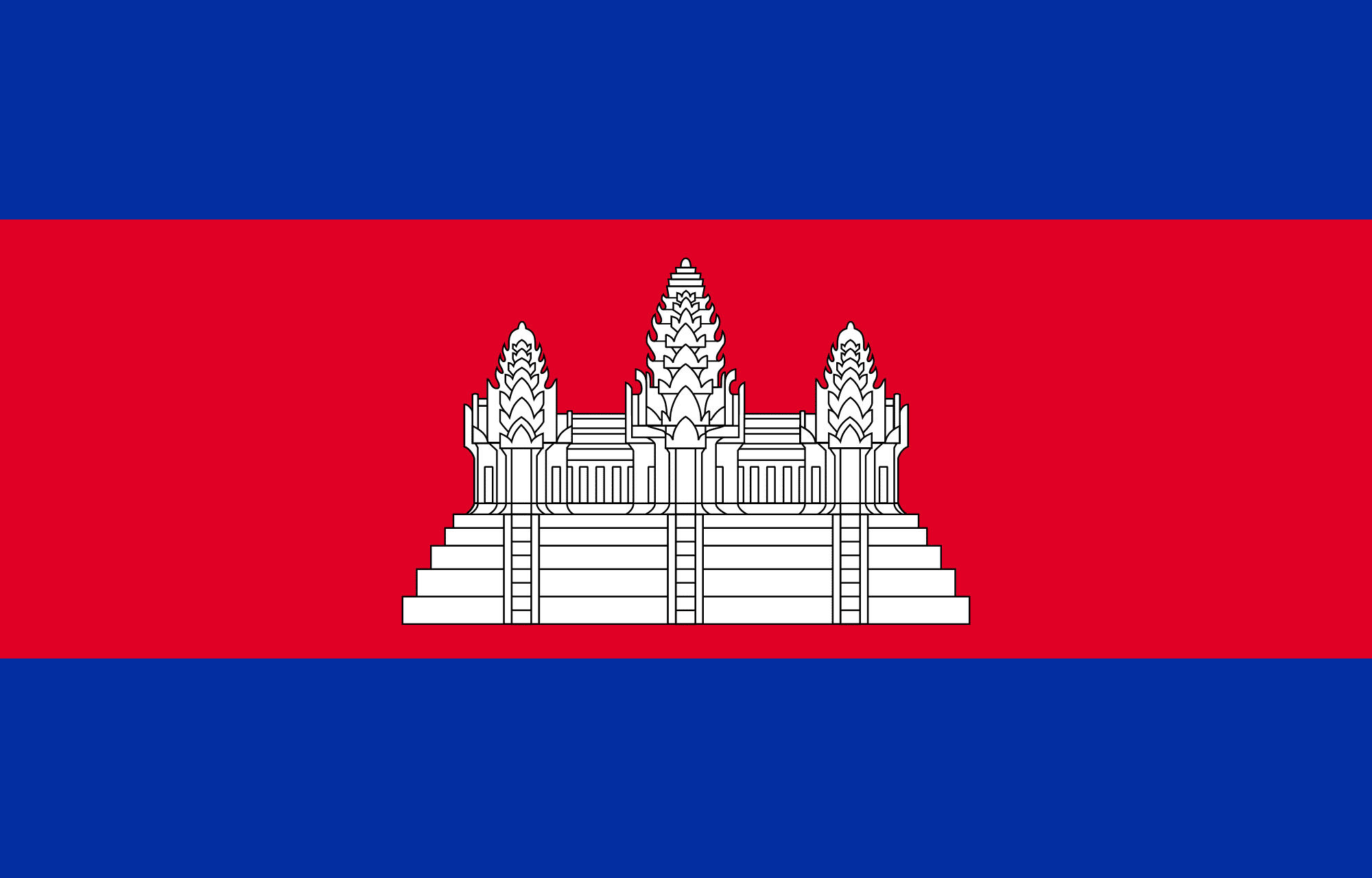 自1850年左右以来,柬埔寨国旗提出的解释在本世纪中叶吴哥窟。现在国旗,用蓝色乐队在上部和底部的水平和红色封面的主要部分国旗在1948年应用在柬埔寨的自由。以下国家的民主柬埔寨,坚持从1975年到1979年,用红旗与主桥吴哥窟风格保持黄色。