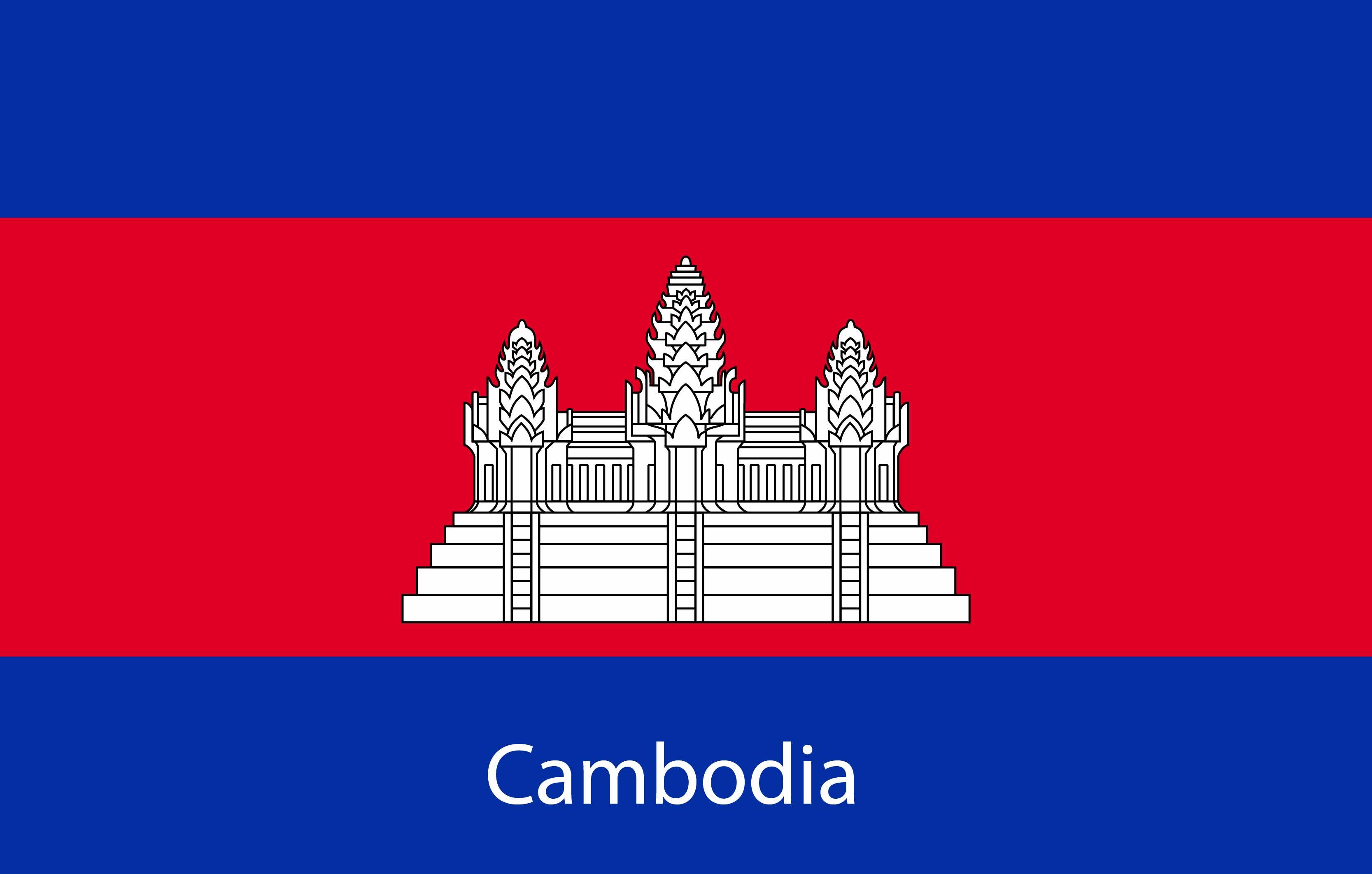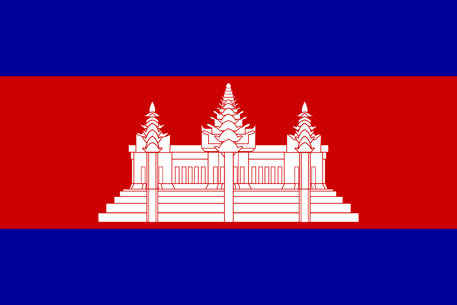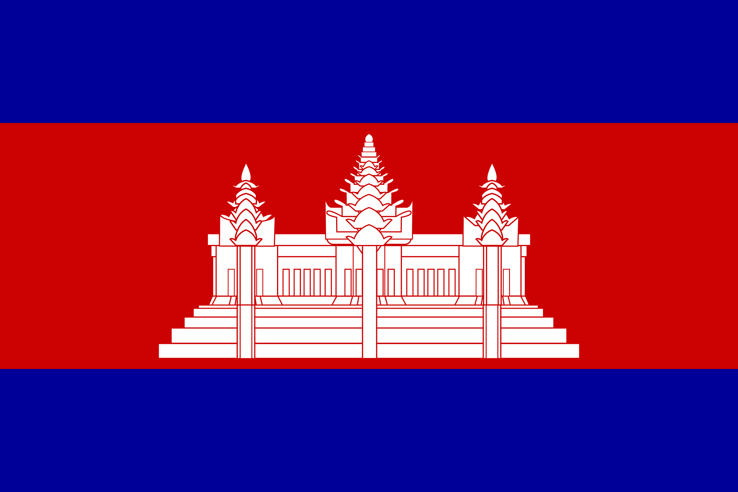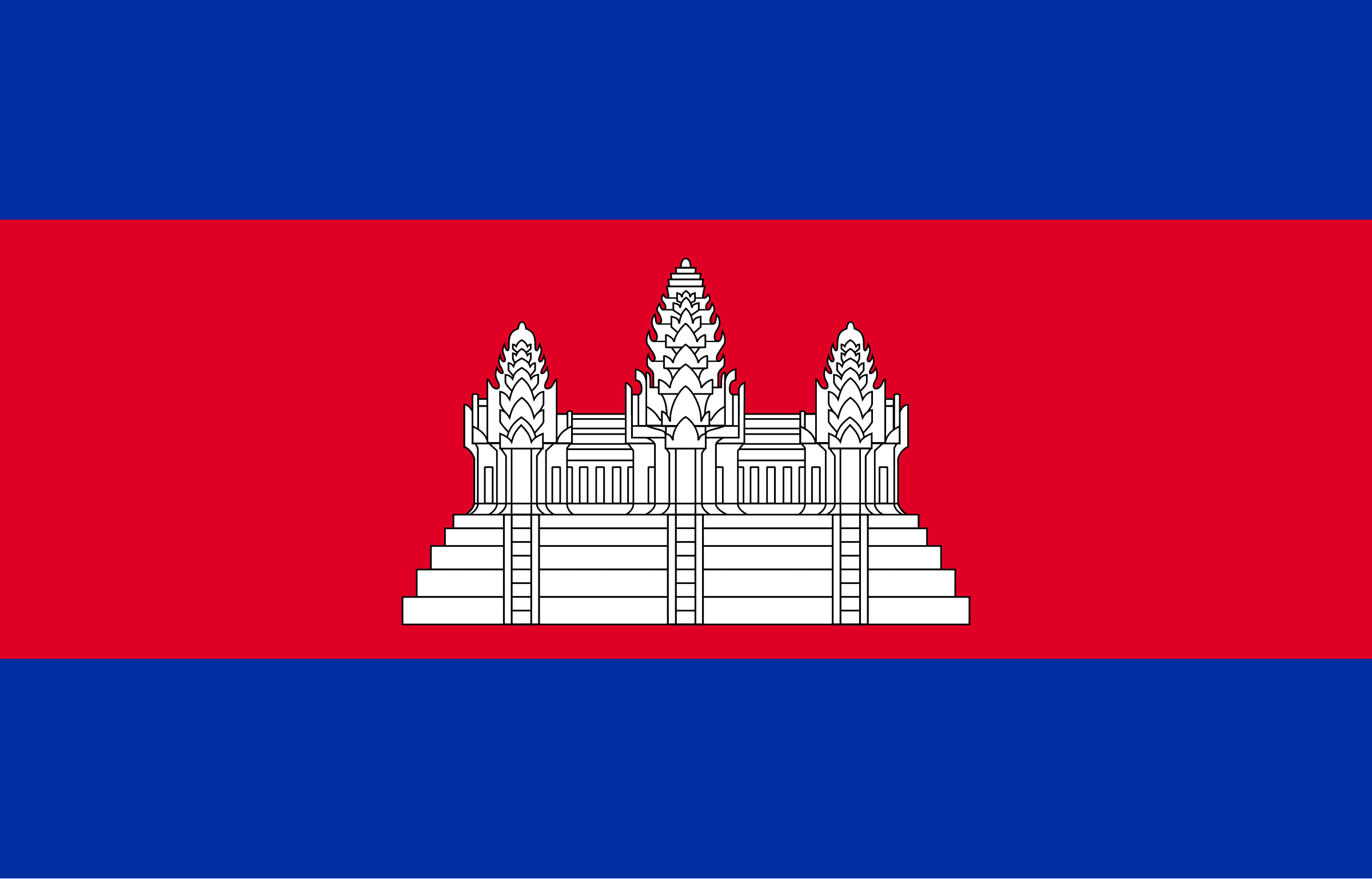 自1850年左右以来,柬埔寨国旗提出的解释在本世纪中叶吴哥窟。现在国旗,用蓝色乐队在上部和底部的水平和红色封面的主要部分国旗在1948年应用在柬埔寨的自由。以下国家的民主柬埔寨,坚持从1975年到1979年,用红旗与主桥吴哥窟风格保持黄色。