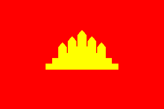 柬埔寨的国家民族统一战线的溶剂化作用增强的状态标志应用的高棉Issarak次反法的水平阻力的新状态。这个标志有相同的遮阳设计DK国旗,但黄色的五塔吴哥窟的人物。当PRK重新标记本身作为“柬埔寨国家”(SOC) 1989年,国旗的减少50%变成了红色。UNTAC国旗曾在1992 - 1993年调整间隔随着SOC的国旗在柬埔寨。