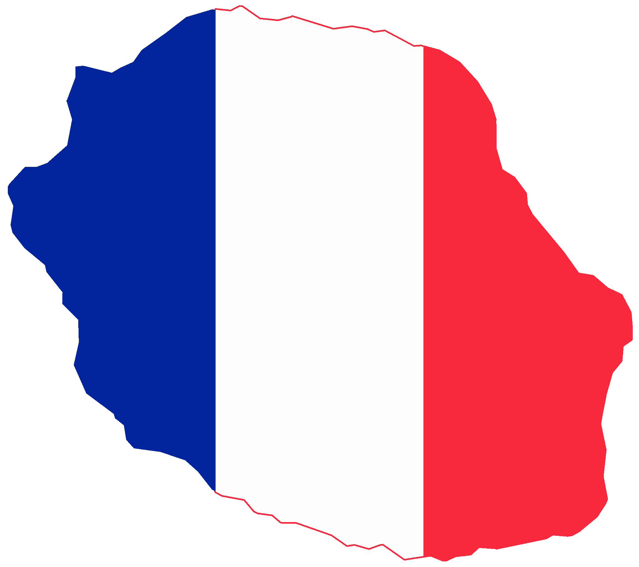 该岛是法国的所有权,因此使用了三色的法国旗帜,包括三连杆的蓝色,白色和红色等效尺寸,显示了该国的颜色。这些颜色以特定序列为首先蓝色,然后是白色,最后是红色。