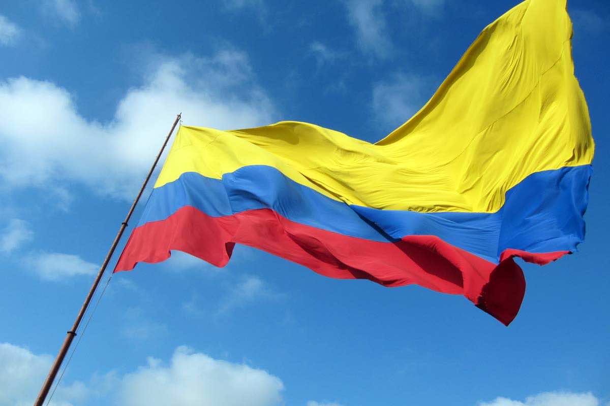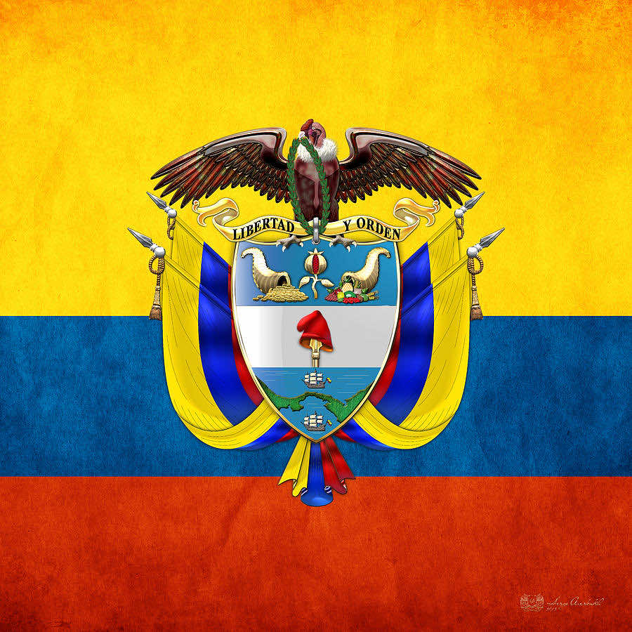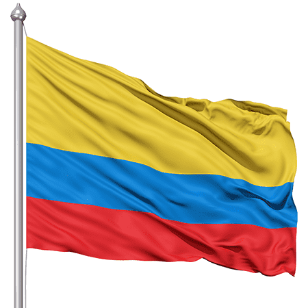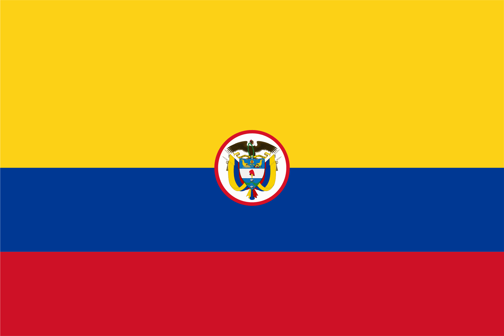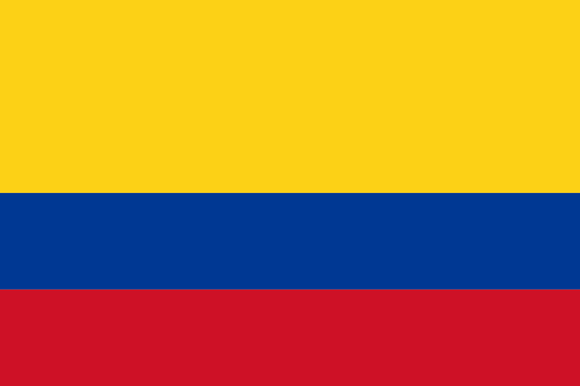 哥伦比亚的国旗是实现11月26日,1863年。水平三色的黄色,红色和蓝色。黄色的红色的条纹占用国旗的上半部分,红色和蓝色各占用的空间的114。