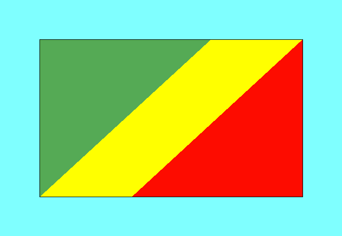 刚果共和国的旗帜是一个由黄色条与下葫芦侧区域隔开的黄色条,左侧为绿色三角形,右下角是红色三角形。该国旗于1959年被采用,以取代法国国旗。直到1970年,刚果共和国共和国一直是刚果共和国人民的旗帜。该版本一直使用,直到政府于1991年倒闭,新政府迅速更新了1970年之前采用的旗帜。