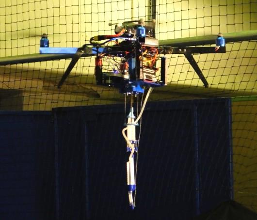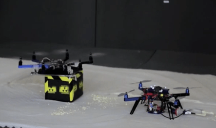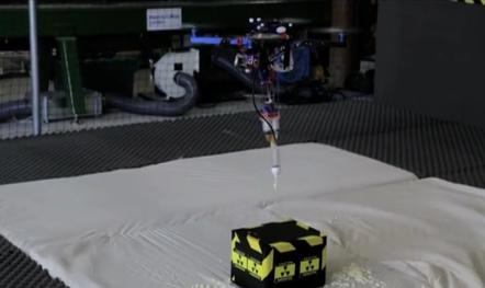 您会看到四肢首先飞翔,并用一层泡沫喷洒“危险”,然后是六杆机,将其固定在物体上,并等待泡沫设置。完成此操作后,无人机将其下腹部下方的危险物体飞行。研究人员特别希望这种方法有助于消除核废料。