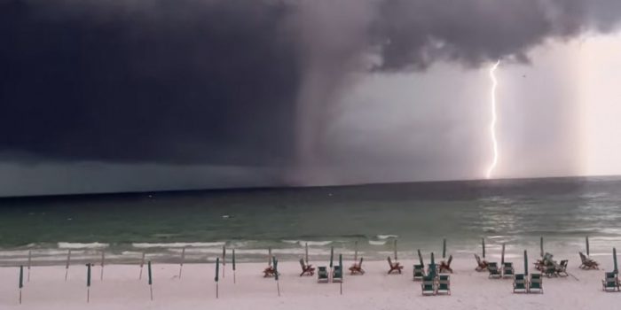 周二,佛罗里达州德斯汀海岸沿着墨西哥湾的巨大沃特布特(Waterspout)撕裂的那一刻被捕获在电影中,揭示了一种天气现象,使居民敬畏和恐惧。