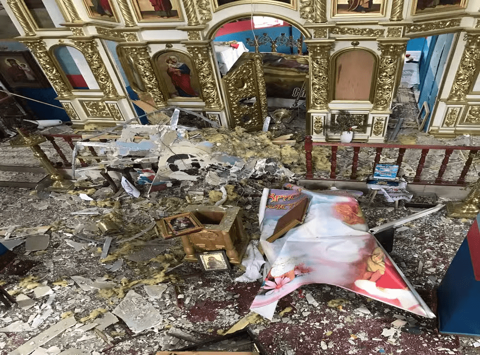 但是,俄罗斯的国防部否认任何参与,并指责乌克兰军队在撤军之前对千万圣徒教会进行烧毁。