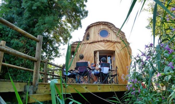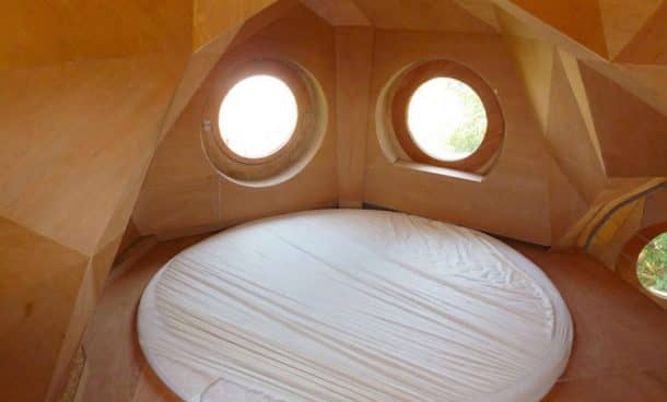 Les Guetteurs具有别致而又舒适的内饰,同时是可爱猫头鹰形状的出色外观。机舱与巢形的大圆床绑在一起,充当二楼的焦点。