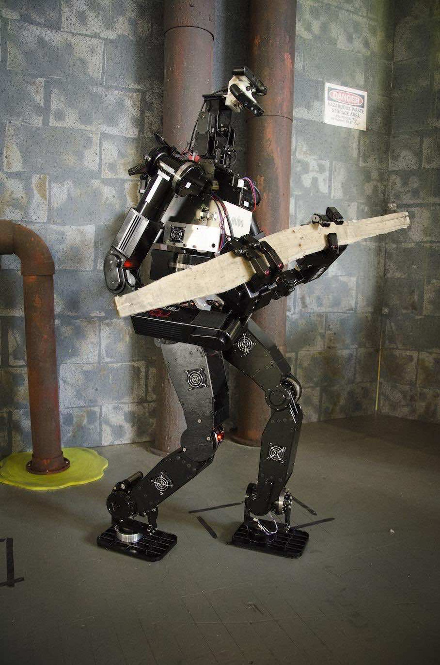 Hubo可能是刚果民主共和国最轻的机器人。机器人的大小和力量是一个10岁男孩的大小和力量,重量为130磅,使其容易被人携带到要使用的地方。这给人口公司带来了现实世界的优势。除此之外,开发Hubo的团队还有一些替代者可以接管,以防其中一个机器人崩溃或故障。DRC-Hubo比其前身高,重20%,但它仍然轻巧且流动性足以在试验中执行任务。类似茎状的头确实看起来有些恐怖,但它使Hubo具有更高的视野和更大的能见度。